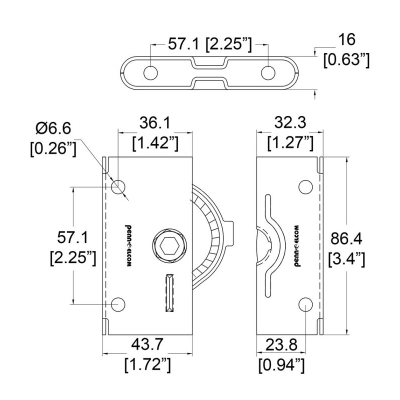 Female coffin lock (aka female panel lock). Side mount. 1550 lb load rating. For use with male coffin lock.